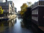 Stalen pendelstuk als overgangsconstructie tussen leidingbrug en bodem Singelgracht