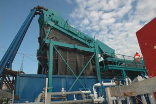 Stalen platformconstructie ten behoeve van bentonietcontainer en pompcontainer, gefundeerd op onderbouw van bestaande brug.
