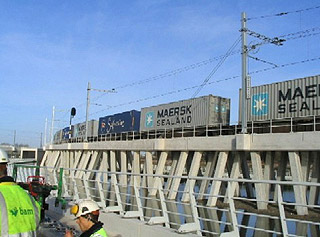 - Damwand met verankering langs bestaande spoorbaan.